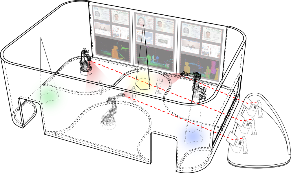 The museum explores the topic of ubiquitous surveillance in our contemporary media age. Installations and experiences use sensing and display technology, cameras, screens and extended reality tools, to make visitors aware of how their personal information is available to public.